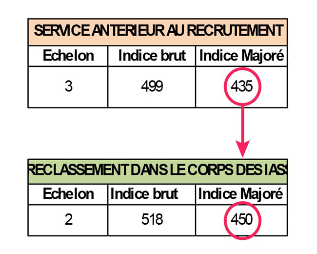 Classement à l’échelon comportant un indice égal ou, à défaut, immédiatement supérieur à celui détenu dans leurs corps et grade d’origine.